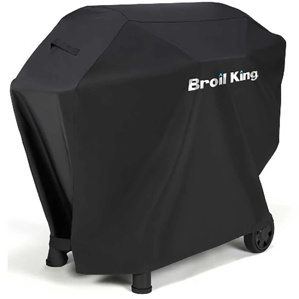 Crafted from water-resistant PVC with a heavy woven 500 X 300D polyester backing. Select Series covers feature mesh venting for enhanced airflow and moisture resistance as well as hook and loop closures for a superior fit. Blue accent stitching adds style to the reinforced seams. Molded rubber handles make the cover easy to remove. The Broil King logo is stitched onto the front. Well-crafted covers to protect well-built grills! Protect your Broil King Crown 400 Freestanding Pellet Grill with a heavy-duty grill cover made from premium materials. Crack-resistant, 2-ply UV protected 500D polyester vinyl ensures that your freestanding Broil King pellet grill will be protected year-round from the elements. When it comes to protecting your Broil King grill from the outdoor elements, never worry with this premium grill cover (67064).