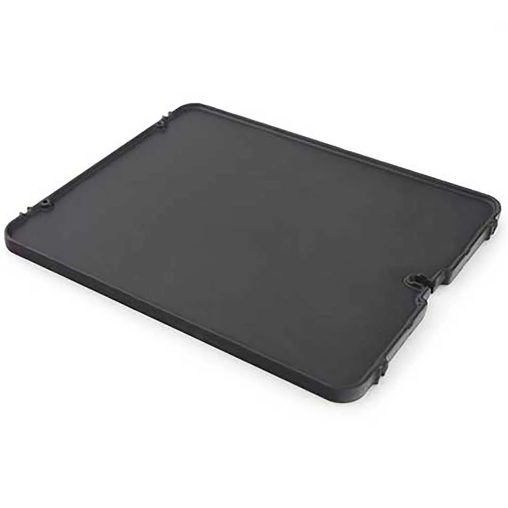 Made of heavy-duty cast iron with a matte porcelain finish, the Broil King (11237) Exact-Fit Dual-Purpose Cast Iron Griddle is an essential Broil King grilling accessory. The Broil King 11237 features double-sided design, with a flat side griddle perfect for sizzling fajitas, cooking breakfast and searing, and a ribbed side for searing Panini or grilled Portobellos. The exact-fit sizing allows for use in place of a section of the cooking grids on your Broil King grill or place it directly on top of your cooking grates. The Broil King (11237) heavy-duty cast iron griddle will fit Broil King Porta-Chef gas grills.