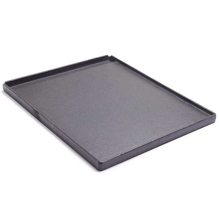 Made of heavy-duty cast iron with a matte porcelain finish, the Broil King (11221) Exact-Fit Dual-Purpose Cast Iron Griddle is an essential Broil King grilling accessory. The Broil King 11221 features double-sided design, with a flat side griddle perfect for sizzling fajitas, cooking breakfast and searing, and a ribbed side for searing Panini or grilled Portobellos. The exact-fit sizing allows for use in place of a section of the cooking grids on your Broil King grill or place it directly on top of your cooking grates. The Broil King (11221) heavy-duty cast iron griddle will fit Broil King Signet and Crown Grills.
