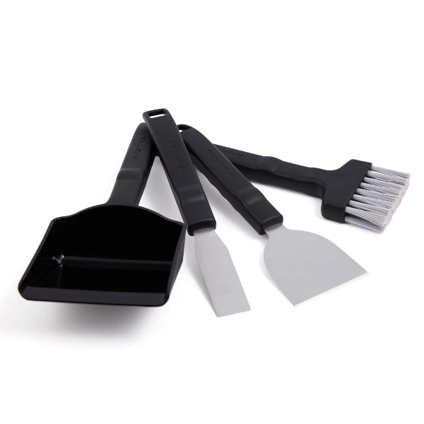 This kit has everything you need to keep your pellet grill clean and working like new. Use the sweeping brush and dustpan to collect ash or charred bits from within your pellet grill. The wide scraper easily removes baked-on residue on large heat plates, while the narrow scraper gets into smaller areas. All tools have resin handles. And it is not limited to your pellet grill; this kit is perfect for your Broil King gas grill too! Kit includes sweeping brush, dustpan, and two durable stainless steel scrapers (one wide and one narrow).