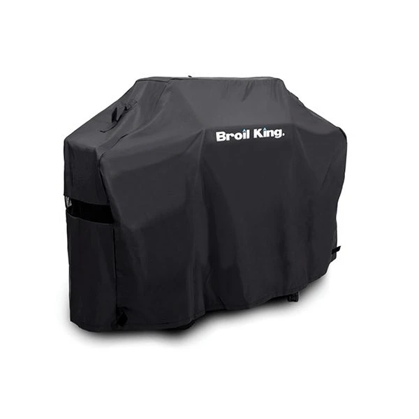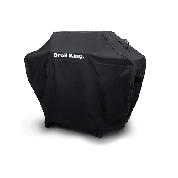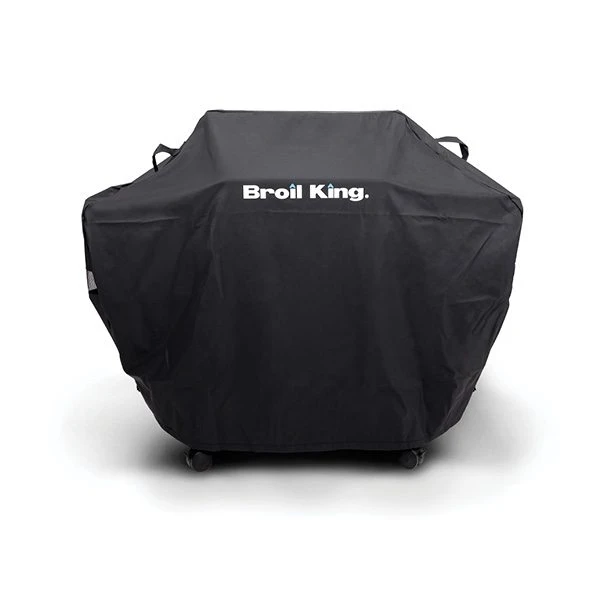Broil King Select Series covers are crafted from durable and weather resistant PVC outer shell with a 500 x 300D polyester lining. These deluxe covers feature hook and loop closures, polyester handles, and the Broil King logo screened onto the front.