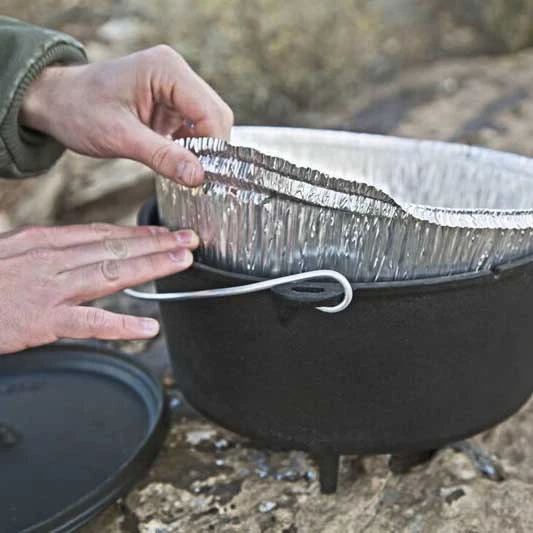 Dutch oven cooking just got easier. These Disposable Dutch Oven Liners simplify the cooking process leaving you with less cleaning and more time to socialize. The durable liners easily lift out of the oven and double as a serving dish freeing your oven for the next recipe. The pre-formed sizes will work with standard depth and deep Dutch ovens. Each package includes 3 liners. For use in Deep Dutch Ovens: Simply unfold the lip of the liner and press firmly into the Deep Dutch Oven