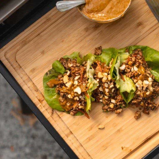 Chopping veggies and prepping meat for the grill can be a difficult, messy job when you do not have the right cutting board. We have designed a Bamboo Cutting Board that was designed to fit perfectly on your Sidekicks included Flat Top Griddle. The deep groove carved around the outside of the board catches all the juices and keeps the mess in one place. The gorgeous bamboo surface also makes for great food presentation, bring food to the dinner table, create a beautiful cheese board, or charcuterie. Add the Bamboo Cutting Board to your indoor and outdoor kitchen collection today!