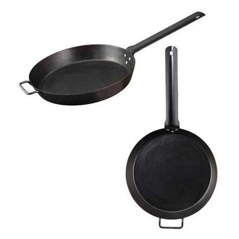 Cooking for Paul Bunyan? You might need the Lumberjack Skillet. This 16 inch skillet is large enough for the biggest appetite. With deep dish sides and an extra wide handle, you will have all the space and support you need. The true seasoned steel provides a non-stick cooking surface. When using the Lumberjack Skillet, try holding it with your front palm resting under the handle and your back palm on the topside of the handle near the end.