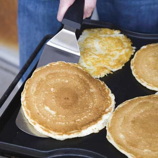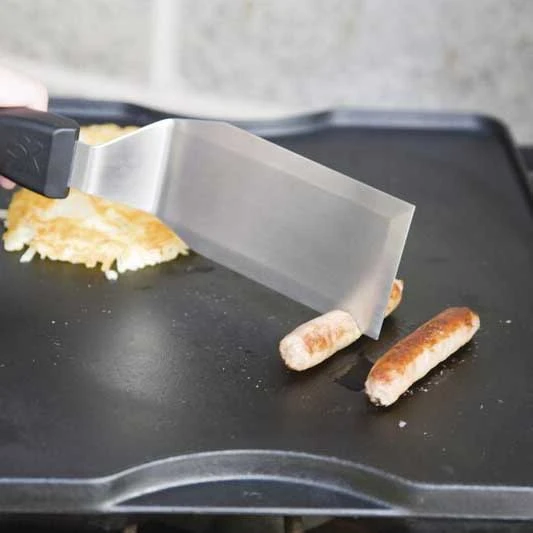 Combining some simple elements, the professional spatula set simplifies the experience of cooking outdoors. This set contains both a deluxe pancake flipper and a heavy duty turner/scraper. The beveled edges and long blades get under your food much easier than a standard spatula. Also, blades made from a flexible stainless steel greatly extends the lifetime of these cooking essentials.