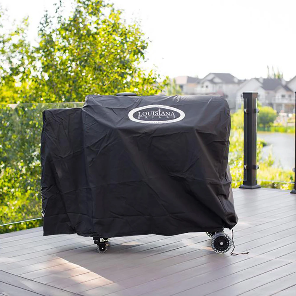 Protect your Louisiana Grills 38-Inch Freestanding Pellet Grill (LG700) with this heavy-duty grill cover. Crack-resistant, 2-ply UV protected vinyl ensures that your freestanding Louisiana Grills pellet grill will be protected year-round from the elements. Custom measured drawstring security creates a wind-resistant cover, allowing your grill to be protected even in high-wind areas. When it comes to protecting your Louisiana Grill from the outdoor elements, never worry with this grill cover (53450).