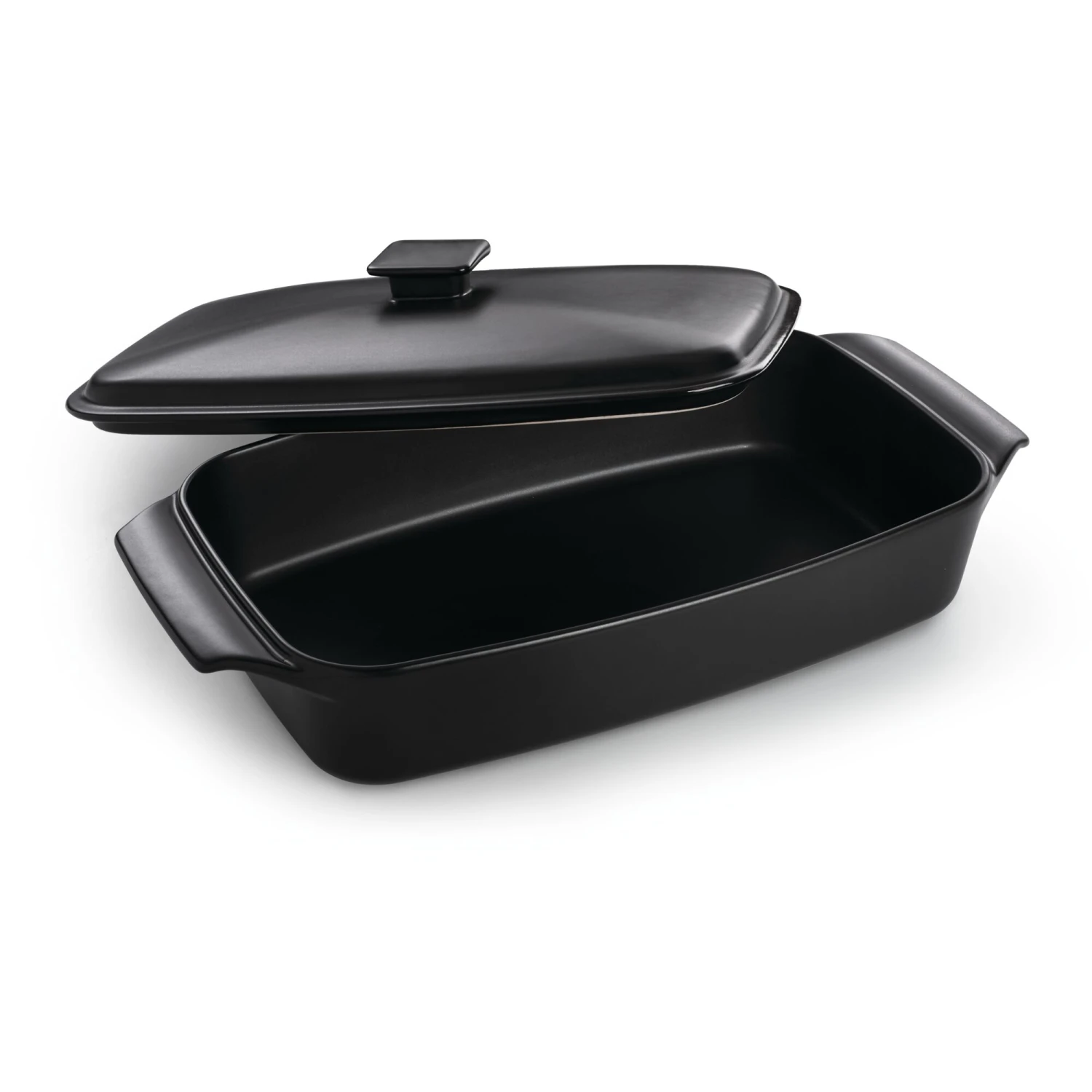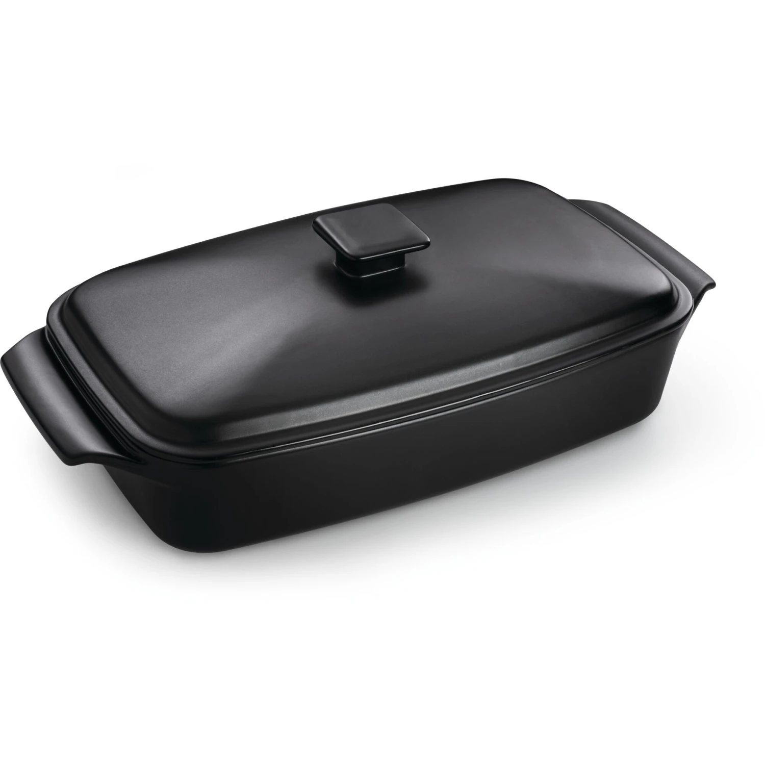 The Ceramic Casserole Dish features an easy to clean nonstick coating that is dishwasher safe. Perfect for roasting and baking you can cook in the oven or on the grill with the lid on or off. This dish is a generous 16.5-inches by 9-inches (42 cm x 22.5 cm) and will easily hold your favorites, like mashed potatoes, roasted vegetables, casseroles, and so much more.