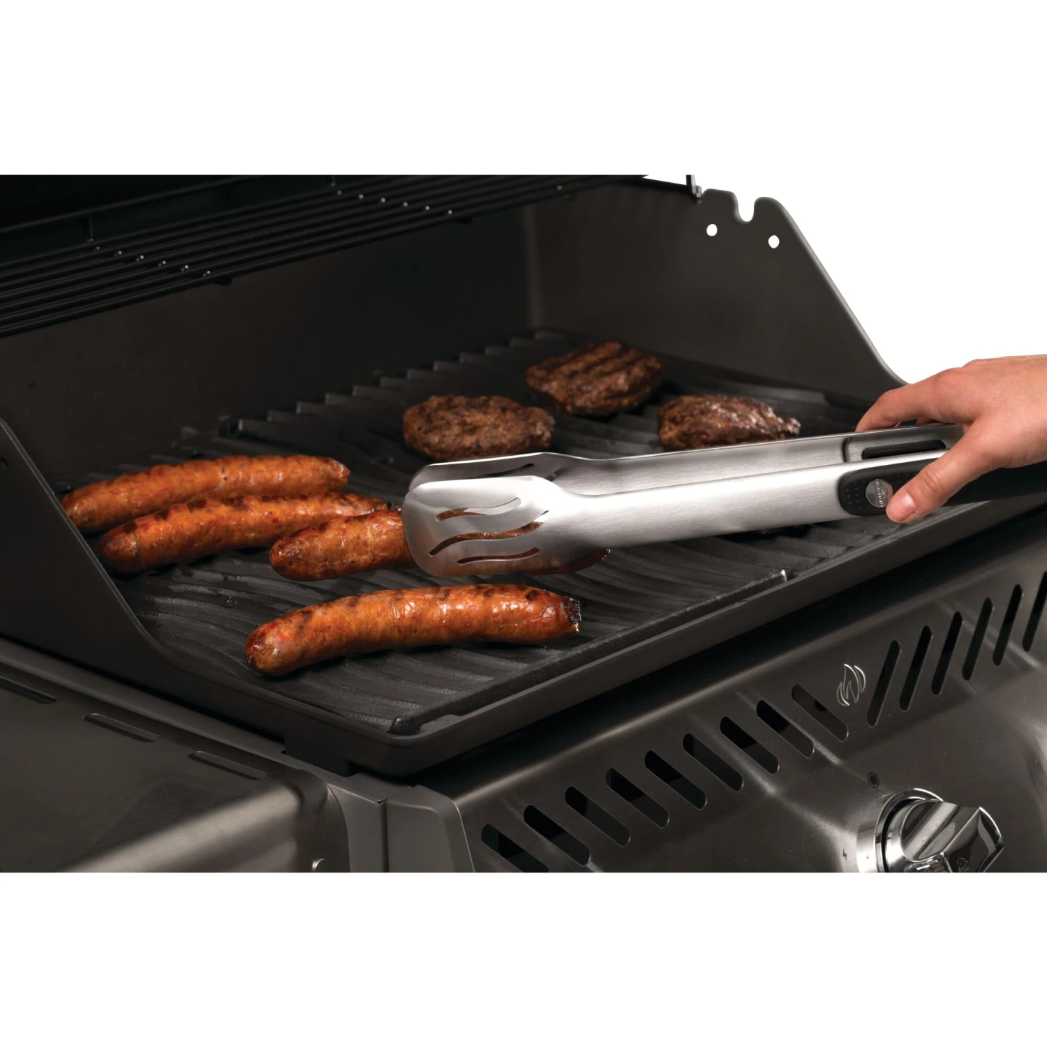 Every grill-master needs a spatula and a pair of tongs in order to prepare great food on the BBQ. This Napoleon 2 Piece Toolset is made from durable stainless steel for longevity and sturdiness. They feature an ergonomic, soft-touch grip on both handles. The extra-long spatula will easily flip and turn anything you wish to grill, easily managing food with its serrated edge and bladed tip. The pull tab on the tongs easily locks and unlocks and both barbecue tools are easily stored thanks to the built-in tool hangers. Whether you are refining your favorite cooking techniques on the barbecue or learning an entirely new way of preparing a meal, Napoleon has the barbecue accessories you need. Clever, multifunctional and easy to maintain, every kitchen benefits from the addition of a Napoleon barbecue accessory. Our accessories provide you with the essentials to create delicious grilled food and then some to enhance your cooking arsenal with a wide variety of creative additions to broaden your culinary horizons.