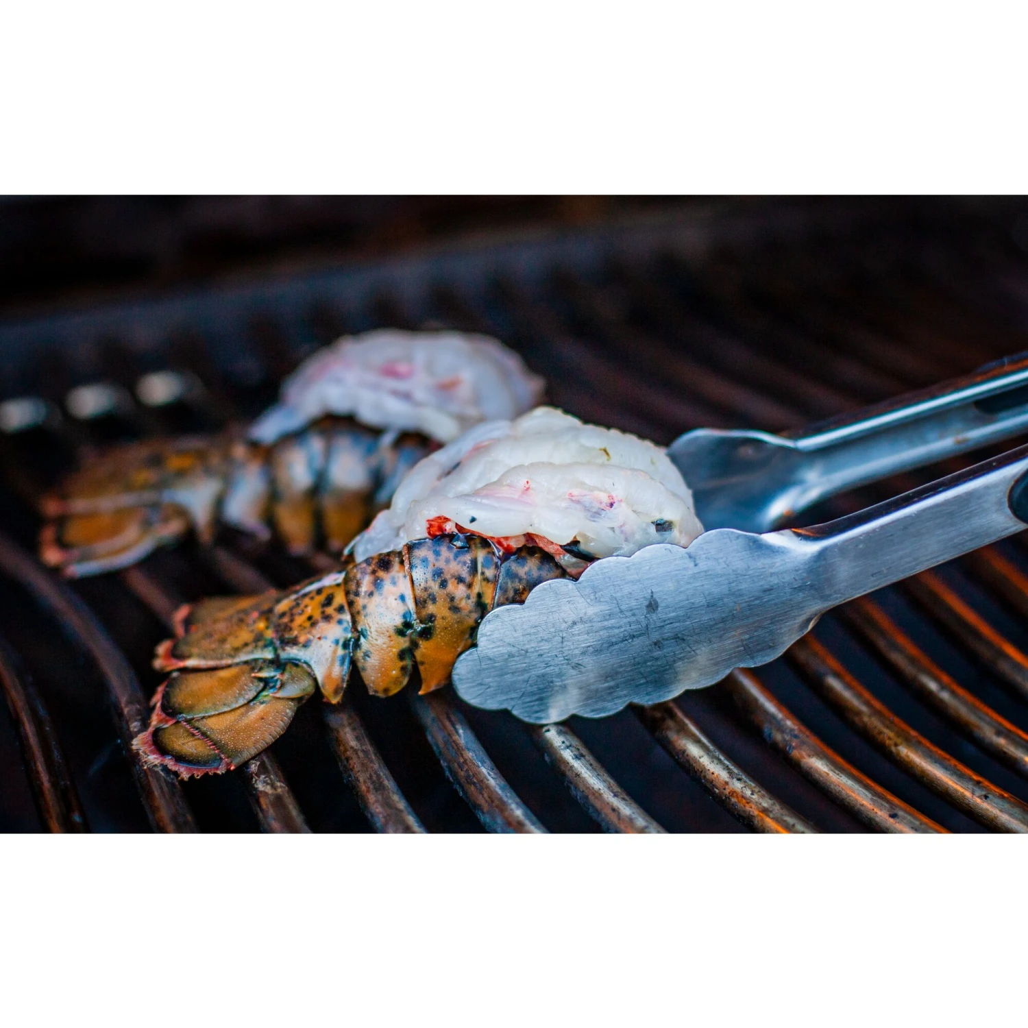 Grill enthusiasts around the globe say that the most important tool in their arsenal is a good set of tongs. And the Napoleon Stainless Steel Tongs are the best ones for the job. Starting with the perfect length, these tongs are not too short, nor too long. The rubberized grip inserts keep the tongs cool to the touch and give extra gripping power when in use. The 16-inches of stainless steel feel balanced and are easy to use in dainty hands or big strong ones. These Stainless Steel Tongs feature a sensitive spring action that allows them to be incredibly dexterous. Pick up a single pea with these tongs, or flip something larger than a two-pound steak. The scalloped ends grip food nicely without piercing the food and spilling the juices. Lock these tongs closed for easy storage. They fit in the kitchen drawer easily. Or hang them from the convenient loop.