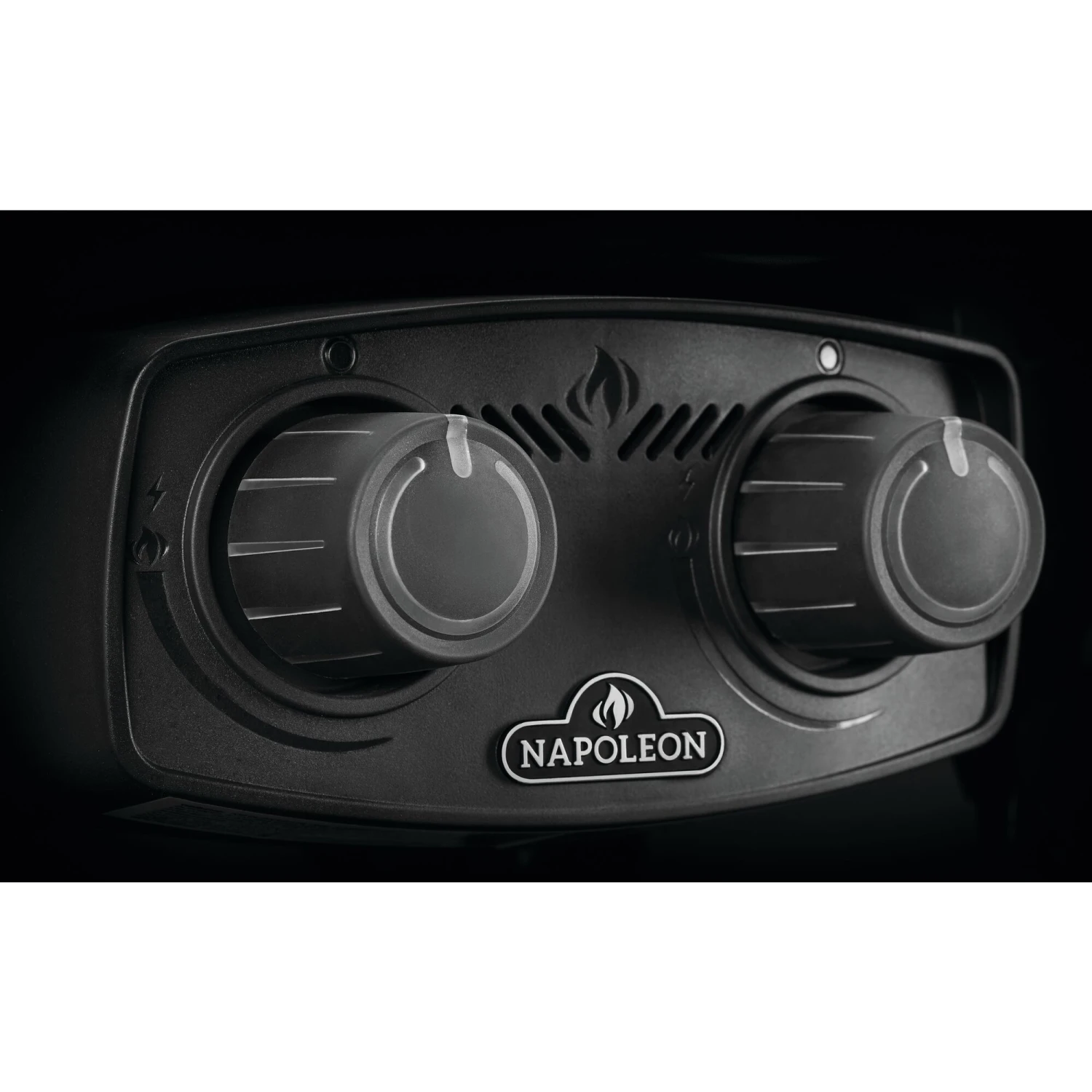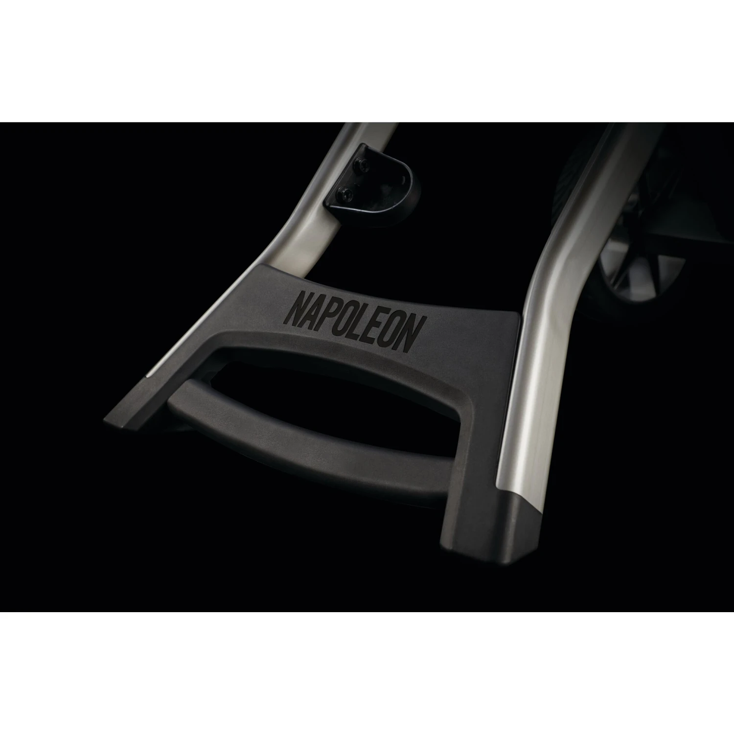 The stylish red Napoleon TravelQ 285 Portable Propane Gas Grill has set a new standard in portable grilling excellence. Don’t let the small size fool you; this grill boasts 285 square inches of total grilling area. That means you can grill up to 17 large hamburgers at once or a couple of small chickens or roasts thanks to the high-top cast aluminum lid. Two, individually controlled burners provide precise temperature control. You’ll know it’s a Napoleon with the iconic Wave cooking grids for those distinctive sear marks. The porcelain coated enamel grids will season to a nonstick surface just like a cast iron frying pan. Replace one set of grids with the griddle and caramelize onions or cook breakfast. This grill features a cast aluminum body to keep it light and portable and the legs fold in for compact storage. The removable grease tray slides out for easy cleaning. The TravelQ is a perfect way to take gourmet grilling on the go.