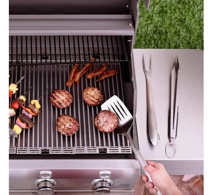 The SABER Premium 3-Piece Tool Set is heavy-duty and includes everything you need to grill your favorite meal. The set includes a stainless steel spatula and fork, plus locking tongs. These tools are built for comfort with soft grip handles.