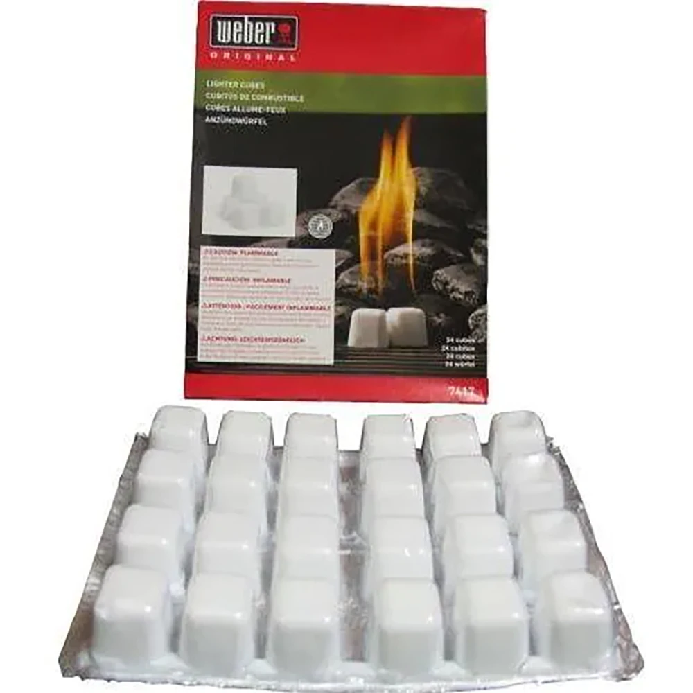 The ideal replacement for charcoal lighter fluid, Weber Lighter Cubes are fast lighting, environmentally safe, and smokeless. They also will not impart a chemical taste to your food. Get your grill on sooner with our odorless, non-toxic fuel cubes that light easily, even when wet. Can also be used in any well-ventilated indoor or outdoor wood-burning fireplace. Box of 24 cubes.